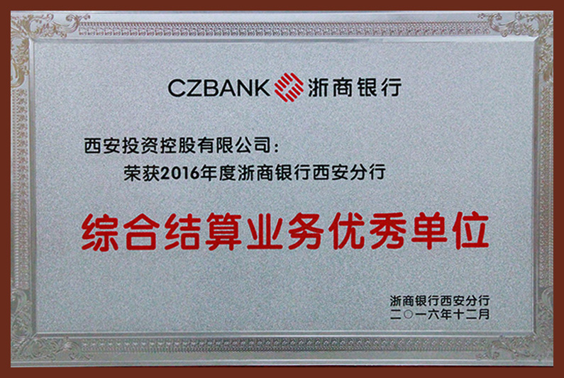 2016年度浙商銀行西安分行綜合結(jié)算業(yè)務(wù)優(yōu)秀單位